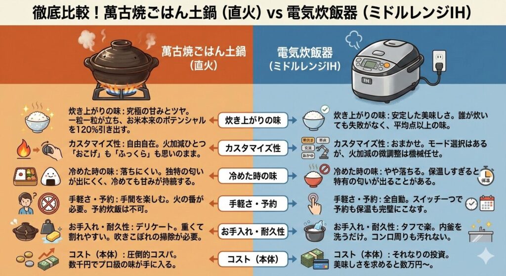 【炊飯器と徹底比較】萬古焼の土鍋で炊いたご飯の特徴を紹介!