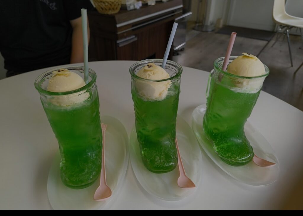 ⇧健康志向と言いながら💦、毎年、夏になるとついつい食べてしまう、メロンクリームソーダ☆ながぐついっぱいで満足満足☆