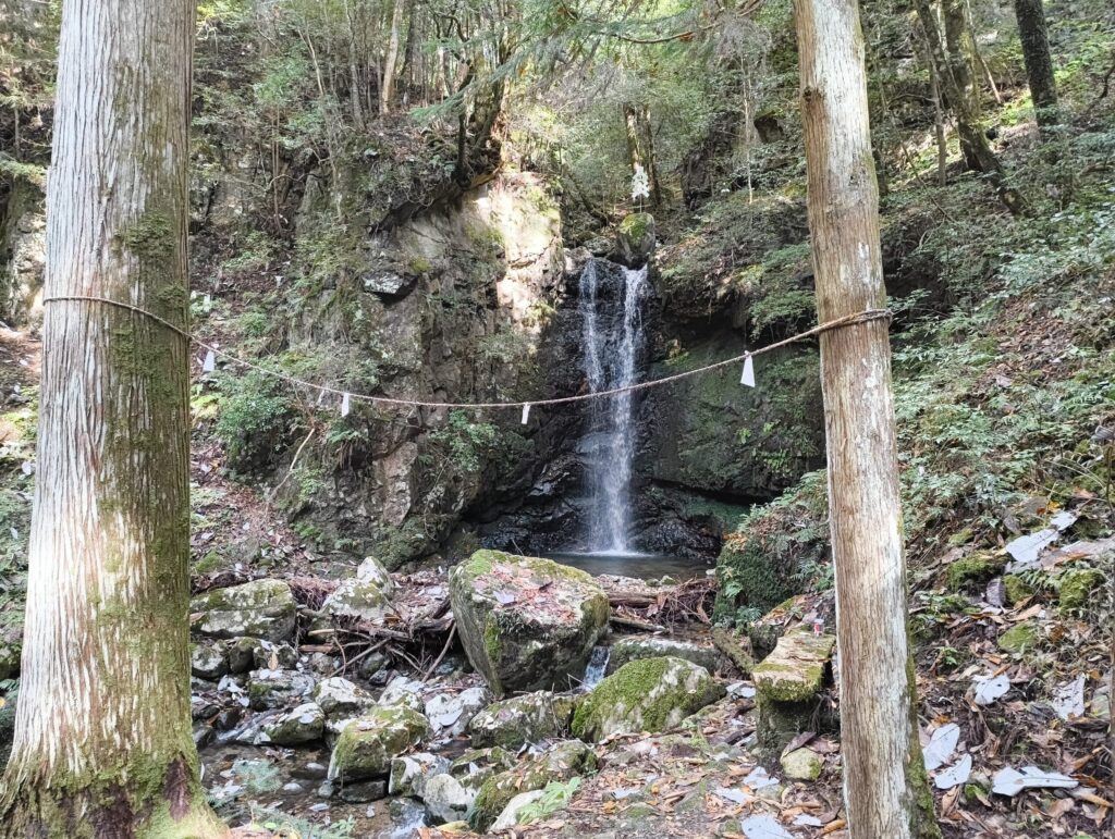 清流板取川流域の山あい、標高は420m、落差10mの瀧があり、そこに神社が建立されています。