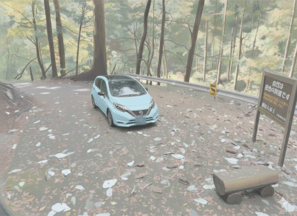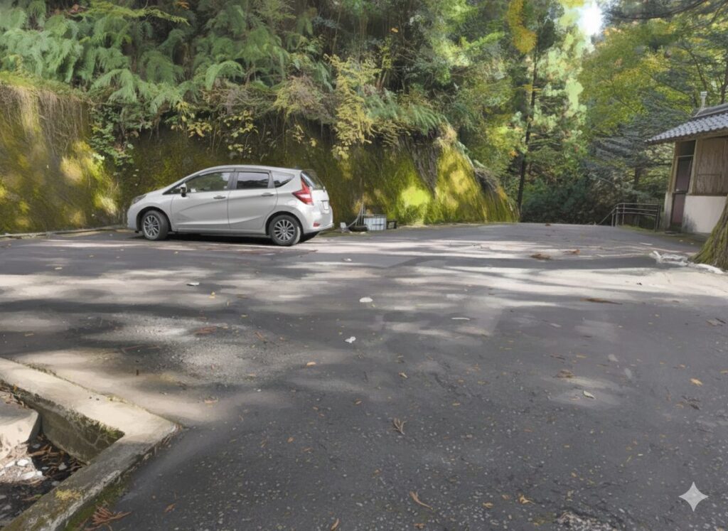 ⇧権現の滝の手前のスペース。車も数台停まれます。